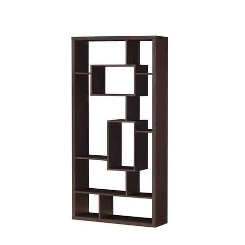 The Mileta bookcase is functionally designed with an attractive classic cappuccino finish to enhance your décor. Organize your essentials with this unique, stylish bookcase. Different level contoured shelves and a versatile construction highlight this beautiful bookcase. Some Assembly Required.